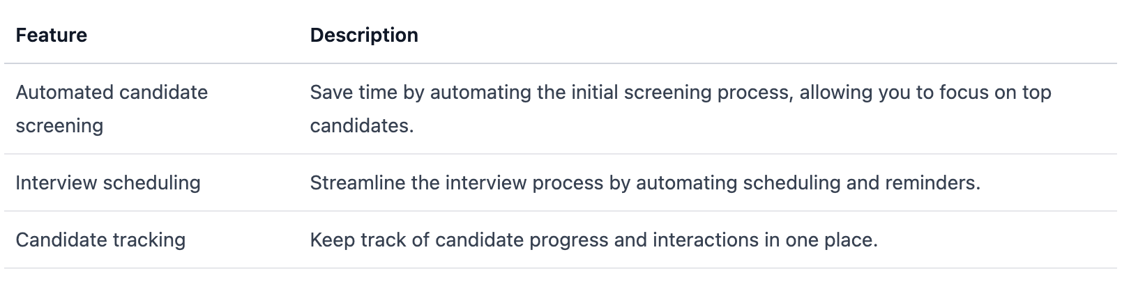 - Resume Screening: The AI-powered system analyzes resumes, cover letters, and other application materials to shortlist the most qualified candidates.