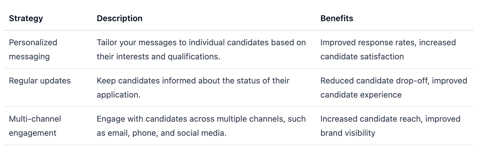 Effective candidate engagement is crucial to attracting top talent. Here are some strategies to enhance your candidate engagement: